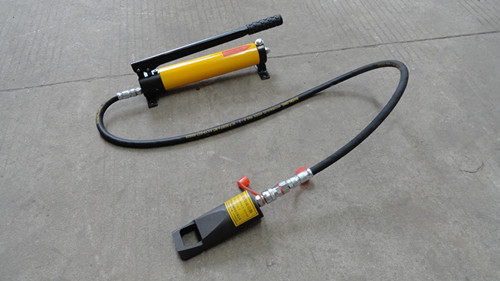 3、手动油泵,使劈刀顶出推进至螺母,注意,在劈刀没有顶到螺母之前,压力表显示为零,劈入螺母后指针开始上升,劈刀顶进螺母,当劈刀顶过猛,劈刀快速将螺母劈开损伤螺栓丝扣。