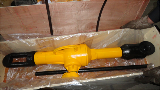 7、工作完毕,可将撑牙推向套筒上升方向,再插入手柄往返扳动,待松后再将拉力机取下。