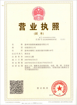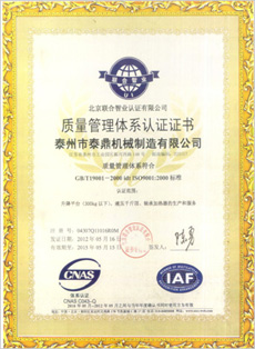 泰州市泰鼎机械制造有限公司塑造企业品牌之初,就把质量视为生命,将信誉作为基石。经过近20年的不懈努力,已被业内公认为信誉卓著的企业。
