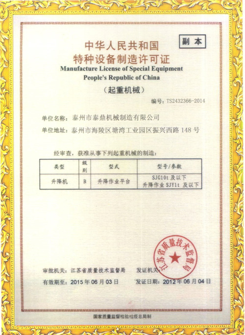 ☆ 质量体系管理认证 ☆ 特种设备许可证