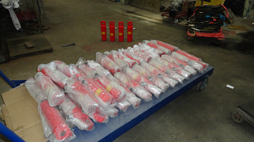 我公司生产的同步千斤顶质量上乘,设计有安全保压装置,内置卸压阀防止过载,?;でЫ锒ヒ岳诎踩僮鳌2⑸杓扑淖榻刂狗?,可随时控制千斤顶同步升与降。该装置的连接采用的是高压胶管和螺纹接头连接,具有使用安全便捷的优点,并克服传统快速接头漏油缺点,主要用于电力、建筑、机械制造、矿山、铁路桥梁、造船等多种行业的设备安装起顶拆卸作业。现已得到广大客户的认可,并与其成立友好合作关系,下图就是我公司给扬州某公司定制的同步千斤顶,已经全部生产完毕,在工程师的指导下,调试合格,现已包装完毕,准备发货。